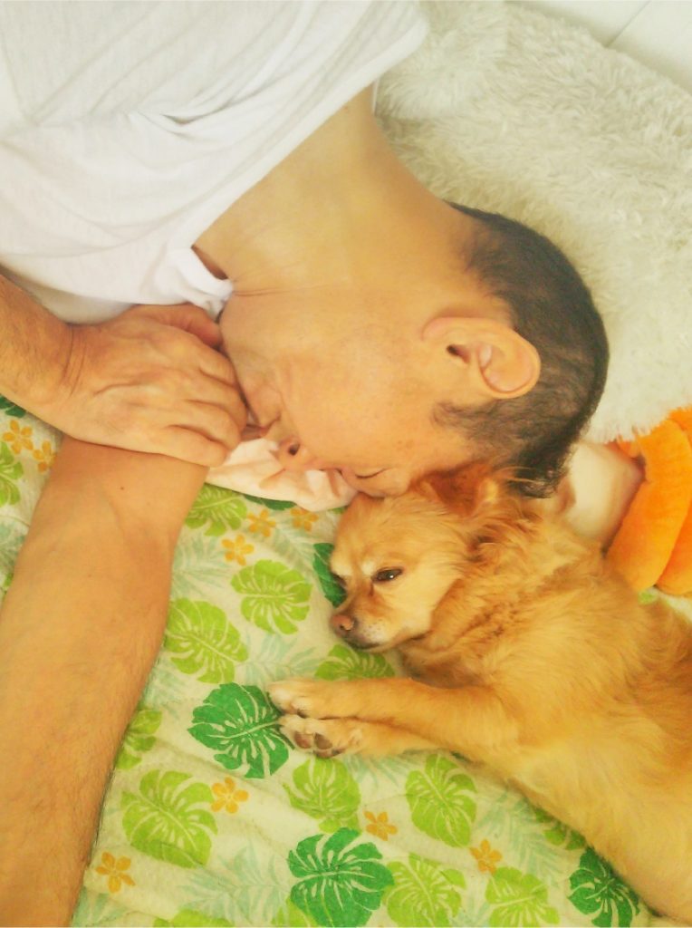 子供に恵まれなかった我が家に来てくれた 一人息子は 元保護犬、チワワの大空(たく)。我が家に笑顔が耐えなくなったと思えた矢先、主人は《肝臓がん》私は《乳がん》夫婦で癌になってしまった。精神的にも経済的にも追い込まれていく中、この子がいるから、負ける訳にはいかない!と頑張れた日々。そして、今。やっと少しだけれど、心穏やかな日々を過ごせるようになった。そんな、休日の午後のひととき。愛おしい寝顔。 《有難う》