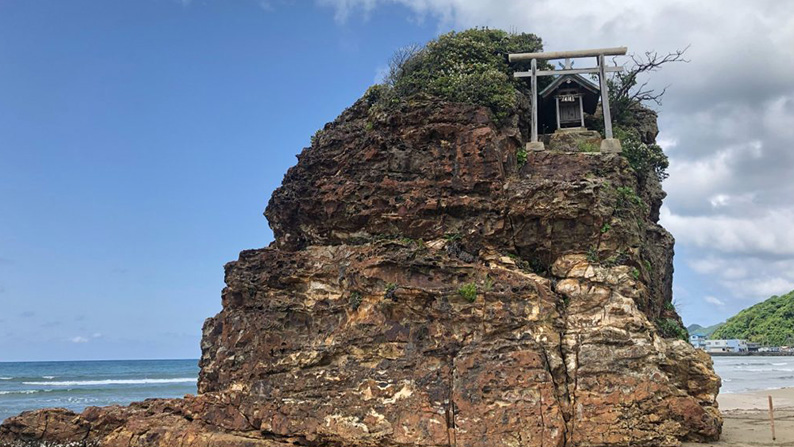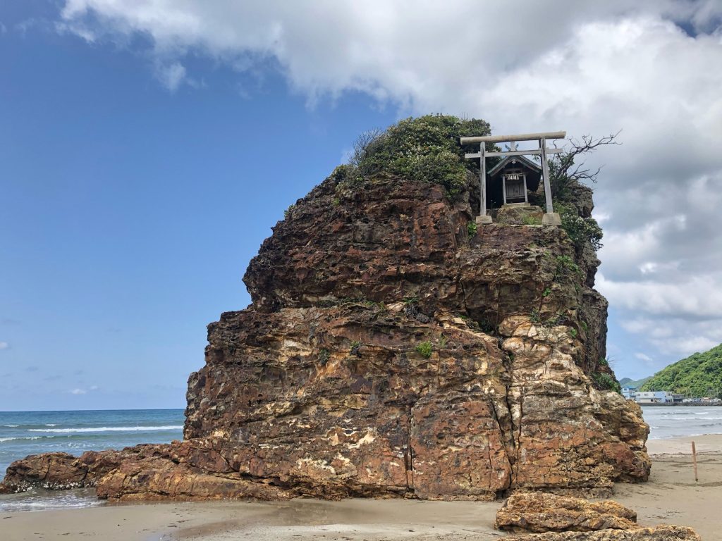 闘病中に知り合った秋田在住のがん友と『治療が終わったら会おうね』と約束していました。車で10時間。術後3ヶ月、まだ脱毛した髪の毛は坊主頭。そんなに遠くまで行けるのか、私にとってはチャレンジに近い旅。彼女に会えた喜びと長旅が出来た感動が蘇る【ゴジラ岩】の写真です。