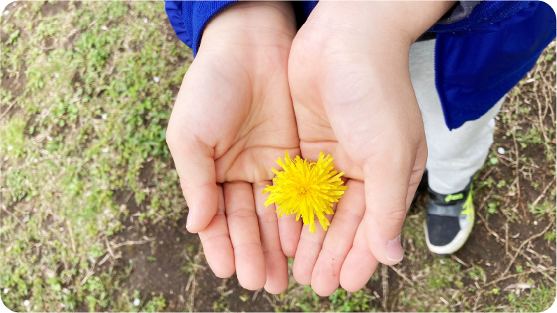 「お母さん、たんぽぽを見つけたよ!」